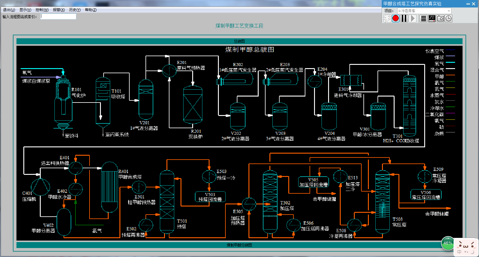 甲醇工艺3D生产实习仿真软件