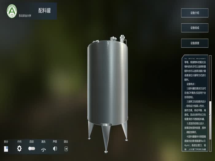 简介:根据婴儿配方乳粉生产规范、配方和规定产量进行虚拟婴儿配方乳粉生产,操控乳品设备进行收奶、前处理、配料、杀菌、浓缩和喷雾干燥等过程